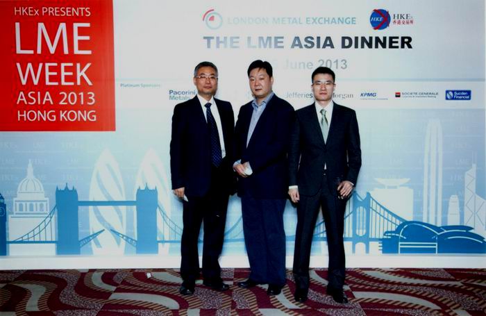 6月26日,受南非標準銀行邀請,公司總經理駱偉棟先生出席LME亞洲會議。 香港交易所首次聯同LME,以「開拓新天」為主題的LME 亞洲年會2013 ,在香港舉辦首屆大型的金屬業界交流活動。來自全球各地的金屬市場翹楚云集香港,共同探索業界在亞洲,特別是中國內地市場的最新發展和經濟前景。會議期間駱總和必和必拓、日礦、智利國家銅業、德銀等國際一流礦業公司和商業銀行就共同關心的國內外市場、銅消費需求、銅產業未來發展趨勢進行了充分的交流。