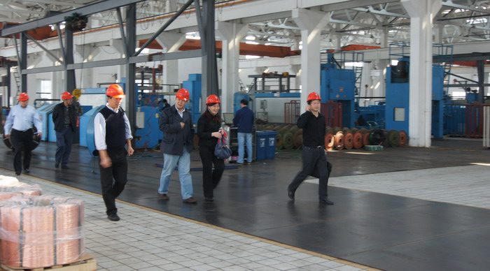 10月22日,上海期貨交易所丁文輝、宜興市人民政府周市長等一行10人訪問江潤銅業(yè),公司總經(jīng)理駱偉棟熱情接待。 駱總對上海期交所、市領(lǐng)導的再次到來表示熱烈歡迎,詳細介紹了江潤銅業(yè)本年度生產(chǎn)經(jīng)營的基本狀況,對未來發(fā)展的展望。期交所丁總監(jiān)對江潤銅業(yè)在多年合作中提供的優(yōu)質(zhì)服務(wù)表示感謝。 隨后,來訪客人深入生產(chǎn)車間,參觀SCR-7000銅連鑄連軋車間、復合銅線車間、銅絞線車間。江潤銅業(yè)先進的裝備,整潔的車間,優(yōu)美的廠區(qū)環(huán)境給參觀團一行留下了深刻印象,一致認為符合上海期貨所注冊試驗工廠的標準。